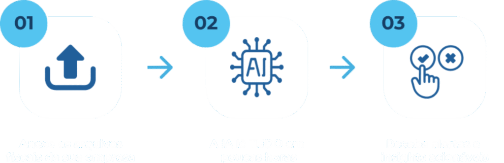 Temos 4 formatos para receber os arquivos (upload, email, busca automatizada, email e API) após o 1o upload os primeiros insights já estarão disponíveis